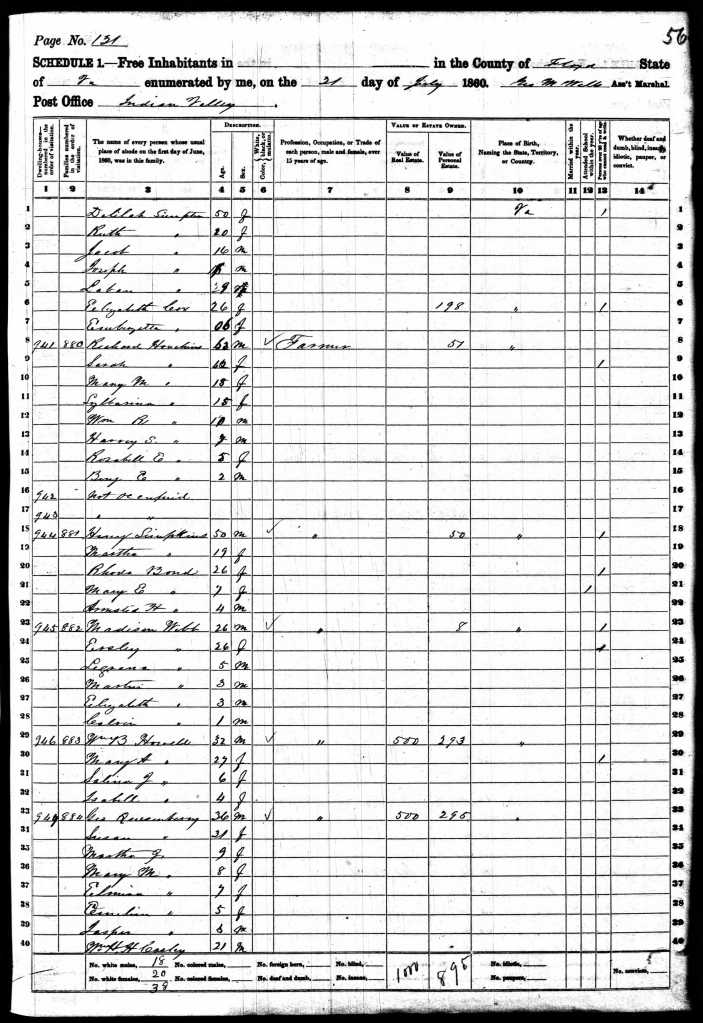 The 1860 Floyd County Census (when Legrande was 5 years old) lists his Residence Post Office as Indian Valley.