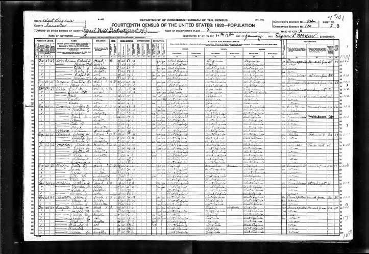 On September 7, 1918 Legrande (age 63) lost his mother, Ursula Eveley Goad (b. 1834). She was still living in Floyd County, Virginia. The 1920 Census shows Legrande (now 65) back in Forest Hill.