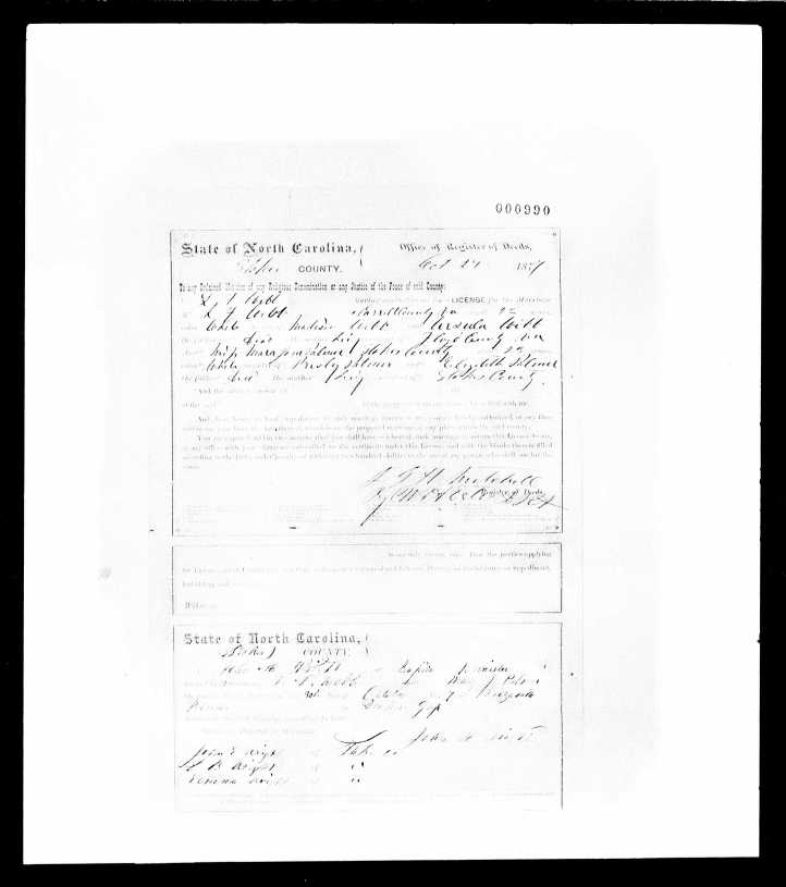 On June 11, 1874, a nineteen year-old Legrande married Louisa Cock (b. 1853) in Carroll County, Virginia. Just a few years later, on October 30, 1877, at the age of 22, Legrande was wed to his second wife (and my grandmother) Mary Jane Palmer (b. 1855 – d. 1898) in Stokes County, North Carolina.