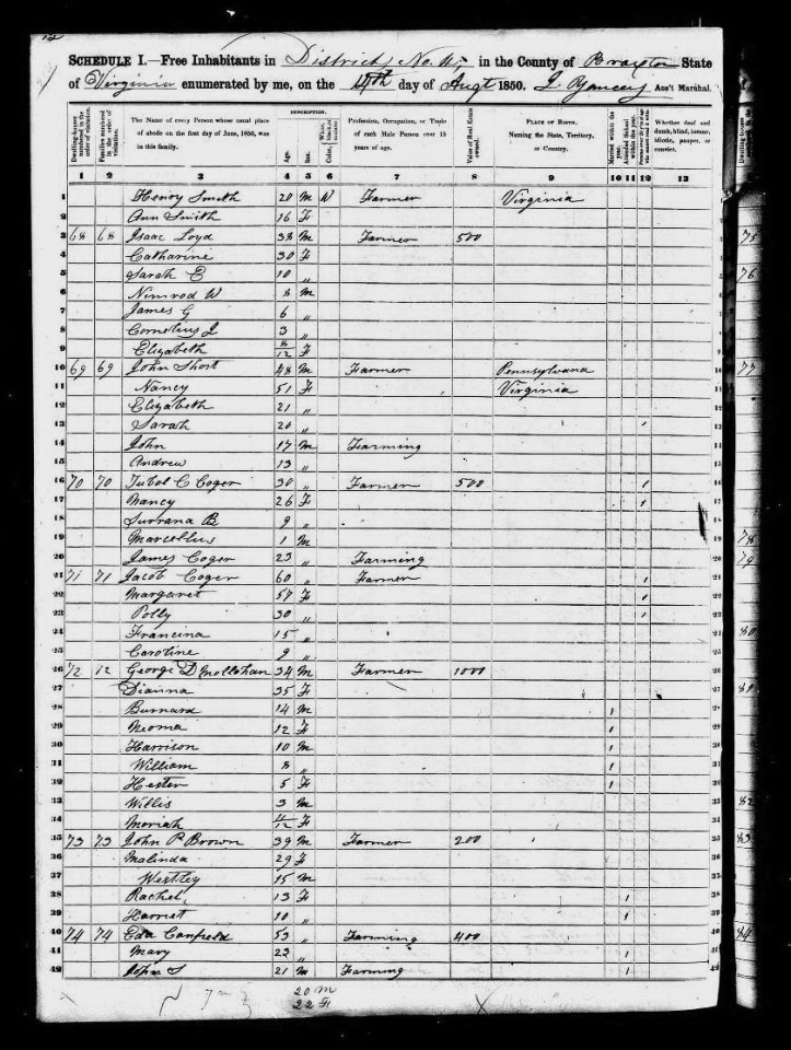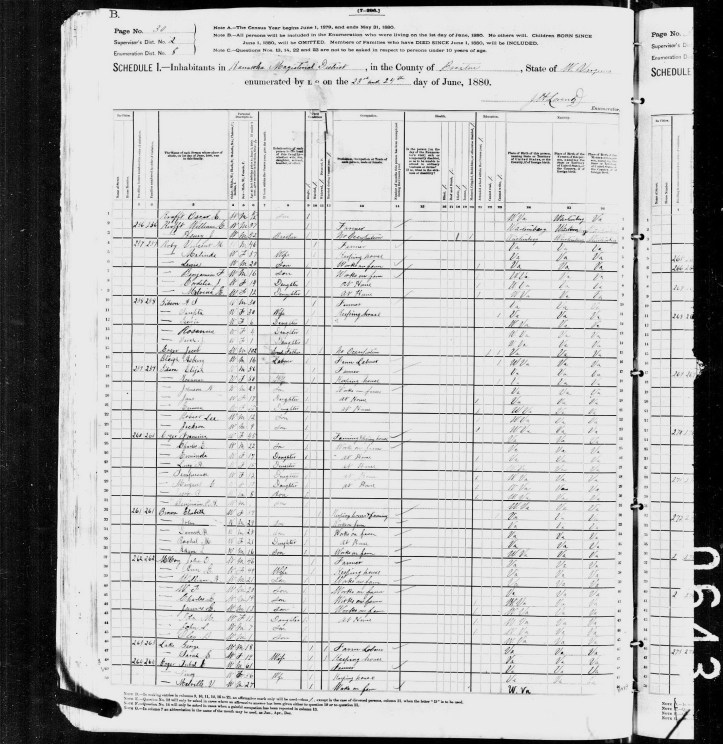 A 44-year old Francina welcomed son Benjamin Porter Cogar (d. 1966) on April 24, 1879. [Note* – There are several cousins on GedMatch that link to Francina through Benjamin Porter Cogar]. The family appears on the 1880 Census: