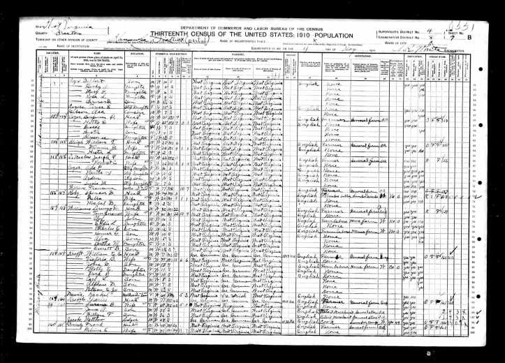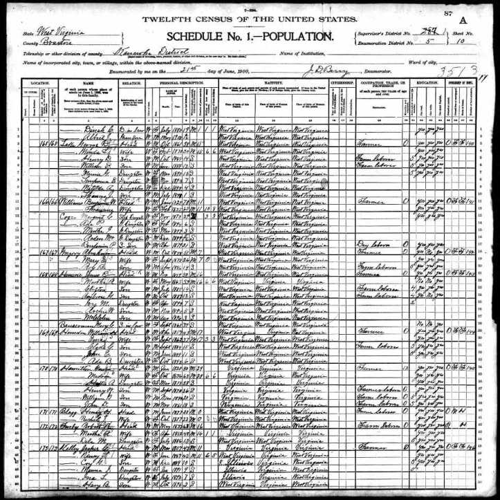 By the time of the 1910 Census, Francina was widowed and living with her daughter Margaret C. This same census entry shows my grandfather, Arden McKinley Cogar, aged 10: