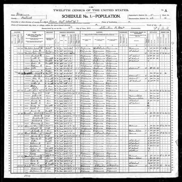Florence was listed on the 1900 Census with her family in Mayo River, Patrick, VA: