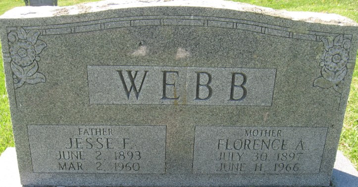 On Aug 27, 1941, Florence’s dad – John Henry Martin (b. 1856) – died in Summers Co, WV. Then in 1945, son Herman T. Webb passed away. On February 22, 1952, Florence lost her mom – Rosa Anna Elizabeth Marin (b. 1861). Then on March 2, 1960, husband Jesse Franklin Webb died.