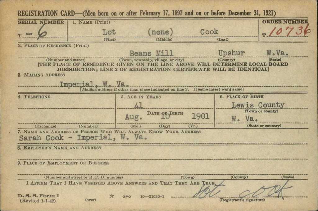 Lott Cook, my 2nd great-grandfather, was born about 1902 in West Virginia.