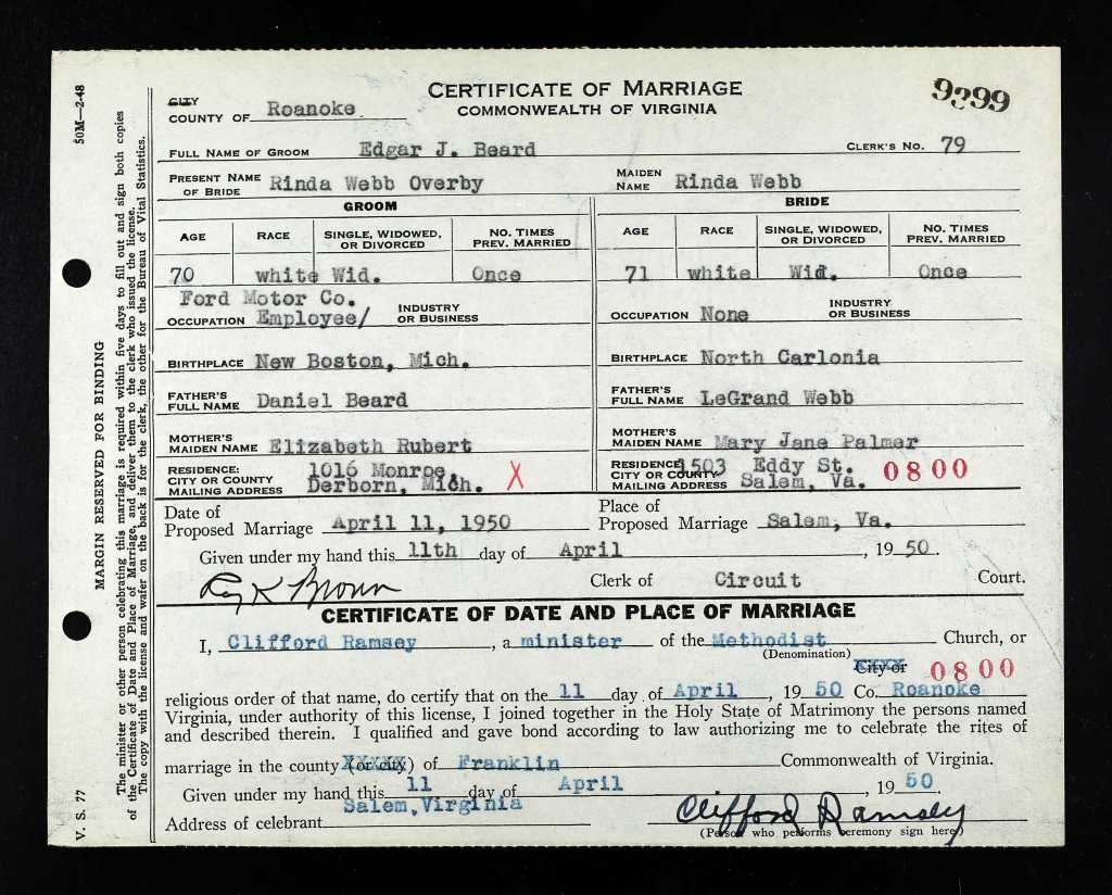 In 1950, she is recorded on her daughter Rinda’s marriage certificate. Rinda was getting remarried at age 71!