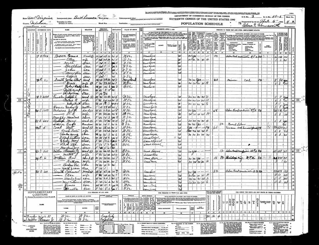The 1940 Census lists Sarah’s highest level of education as “Elementary School, 4th Grade”: