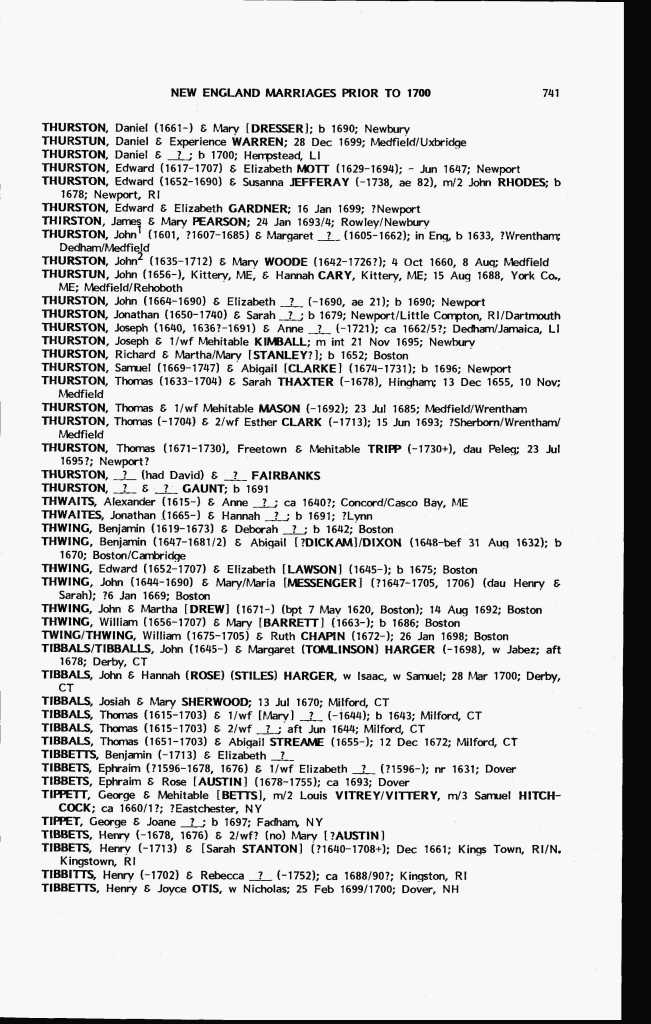In 1633, at age 32, he was married in England to Margarett (b. 1605 – d. 1662). This is documented in “New England Marriages Prior to 1700”: