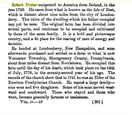 In 1740, at age 42, Robert married Lilleous Christy (b. 1707 – d. 1771) in Pennsylvania. A few years later, his father died (Robert Lee Porter, Sr. – d. 1745).